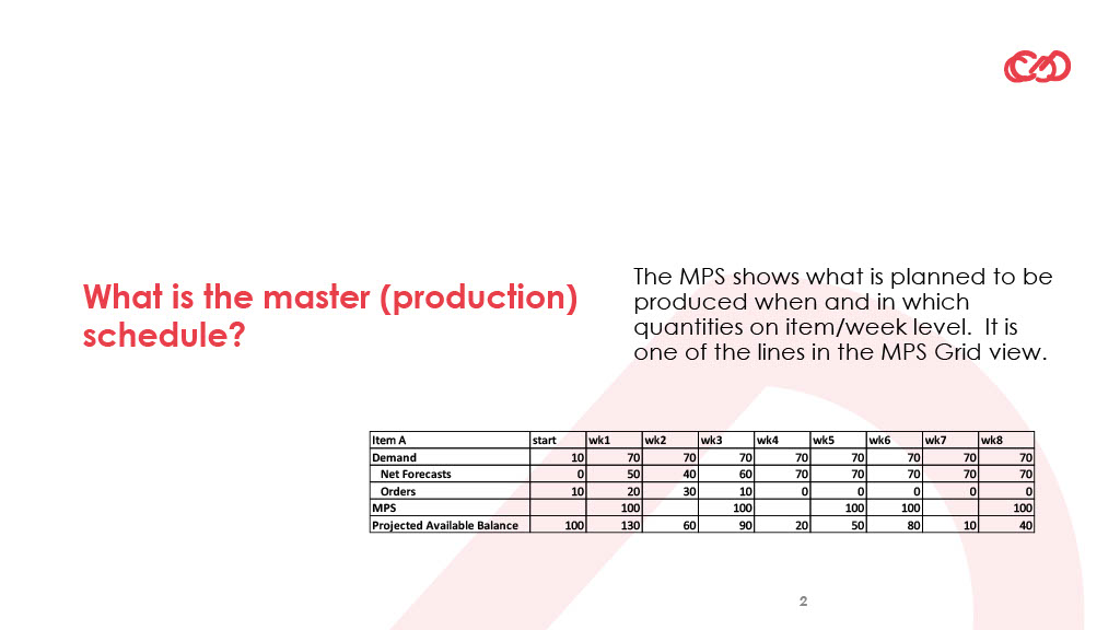 The basics of the Master Production Schedule: